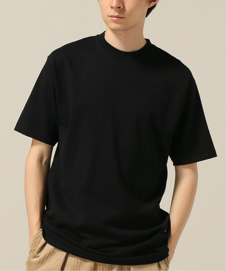 Cotton Solid Black T-shirt in Midweight with a Round Neck, Rib-Trimmed Neckline, Dropped Shoulders, Oversized Fit for a baggy.